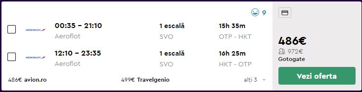 - Zbor: Bucuresti – Phuket, 486 euro, dus-intors, operat de Aeroflot, bagaj de cala inclus
