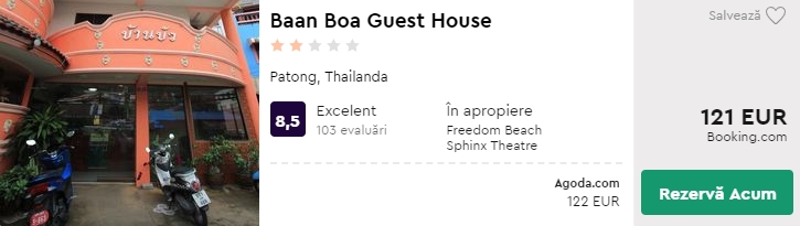 - Cazare 1: Baan Boa Guest House – 121 euro / 9 nopti / camera dubla