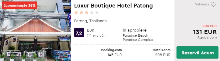- Cazare 3: Luxur Boutique Hotel Patong – 131 euro / 9 nopti / camera dubla