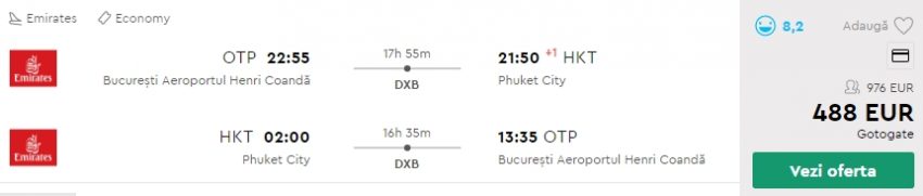- Zbor: Bucuresti – Phuket, 488 euro, dus-intors, operat de Emirates, bagaj de cala inclus