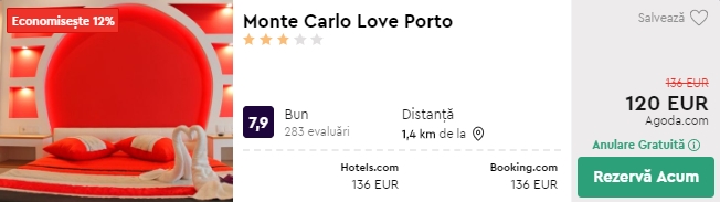 - Cazare 1: Monte Carlo Love Porto – 120 euro / 4 nopti / camera dubla