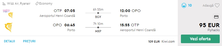 - Zbor: Bucuresti – Porto, 95 euro, dus-intors, garantie Flyhacks