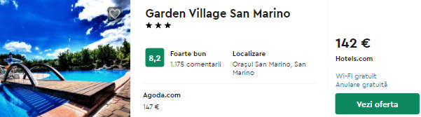 - Cazare (opt. 2) Garden Village San Marino – 142 euro / 3 nopti / camera dubla