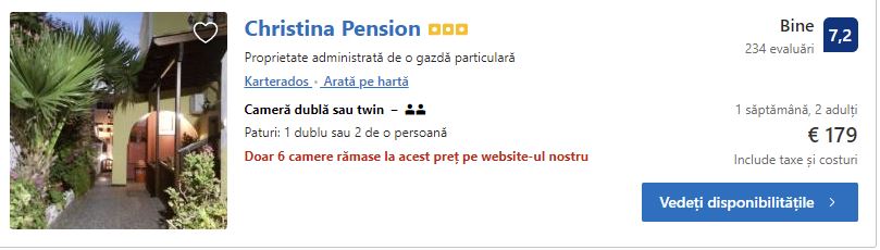- Cazare 2: Christina Pension – 179 euro / 7 nopti / camera dubla