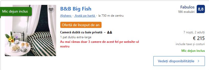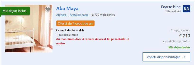 - Cazare 1: Alghero 4u – 178 euro / 7 nopti / camera dubla