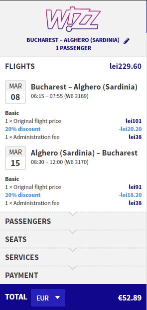- Zbor: Bucuresti – Alghero, 52 euro, dus-intors, operat de Wizz Air