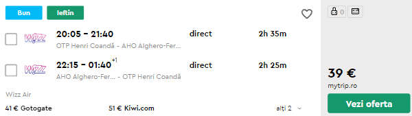 - Zbor Bucuresti – Alghero, 39 euro, dus-intors, operat de Wizz Air
