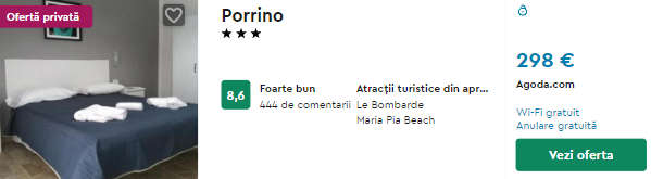 - Cazare (opt.1) Porrino – 298 euro / 7 nopti / camera dubla