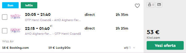 - Zbor Bucuresti – Alghero, 53 euro, dus-intors, operat de Wizz Air