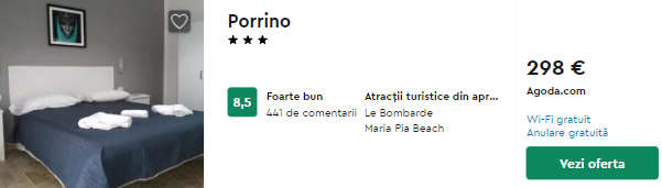 - Cazare (opt. 2) Porrino – 298 euro / 7 nopti / camera dubla