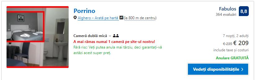 - Cazare 1: Porrino – 209 euro / 7 nopti / camera dubla