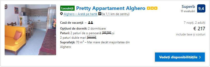 - Cazare 2: Pretty Appartament Alghero – 217 euro / 7 nopti / camera dubla
