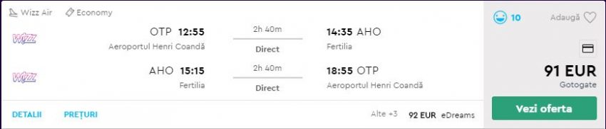 - Zbor: Bucuresti – Alghero, 91 euro, dus-intors, operat de Wizz Air