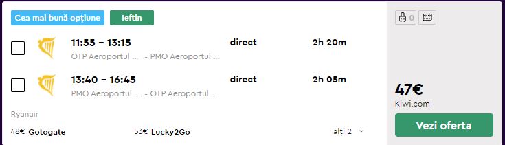 - Zbor: Bucuresti – Palermo, 47 euro, dus-intors, operat de Ryanair