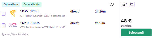 - Zbor Bucuresti – Catania, 48 euro, dus-intors, operat de Ryanair si Wizz Air