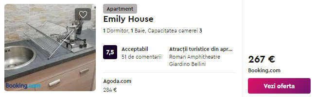 - Cazare (opt.1) Emily House – 267 euro / 7 nopti / camera dubla