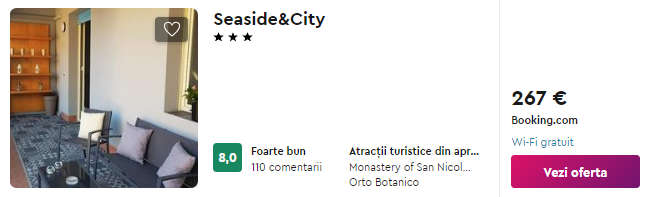 - Cazare (opt. 2) Seaside&City – 267 euro / 7 nopti / camera dubla