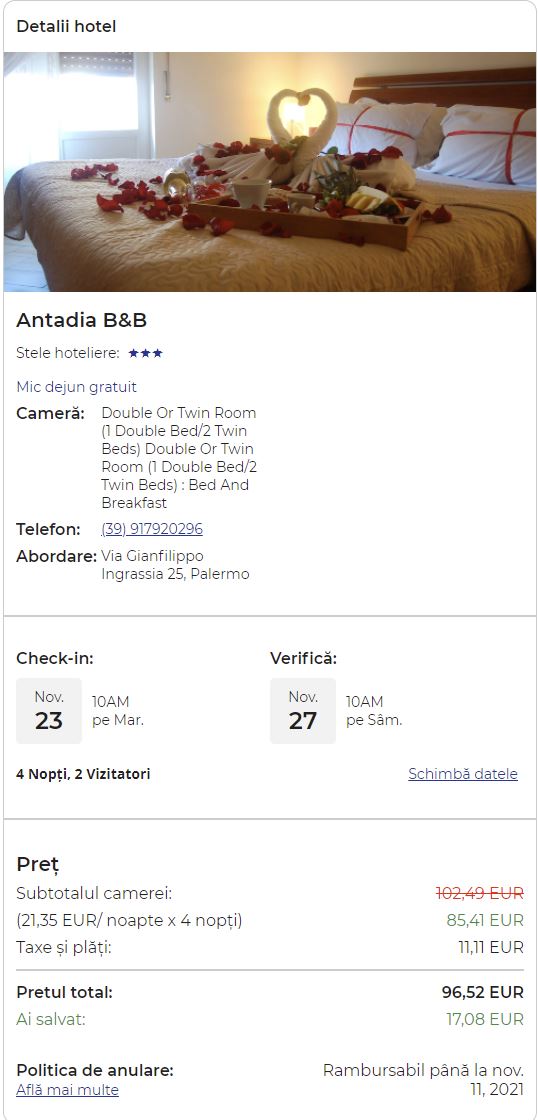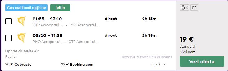 - Zbor: Bucuresti – Palermo, 19 euro, dus-intors, operat de Ryanair