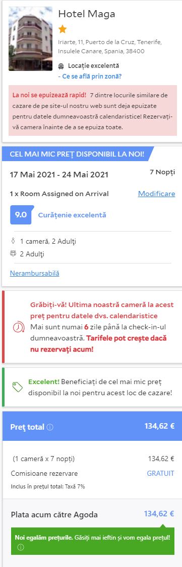 - Cazare 2: Hotel Maga – 135 euro / 7 nopti / camera dubla