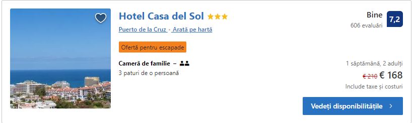 - Cazare 3: Hotel Casa del Sol – 148 euro / 7 nopti / camera dubla