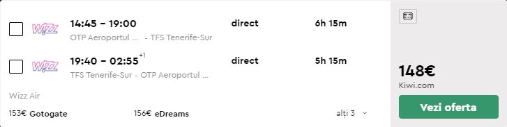 - Zbor: Bucuresti – Tenerife, 148 euro, dus-intors, operat de Wizz Air