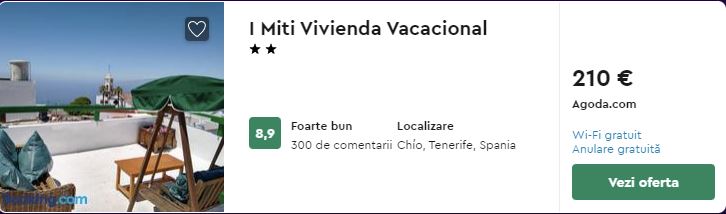- Cazare (opt. 2): I Miti Vivienda Vacacional – 210 euro / 7 nopti / camera dubla