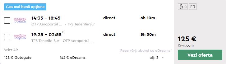 - Zbor: Bucuresti – Tenerife, 125 euro, dus-intors, operat de Wizz Air