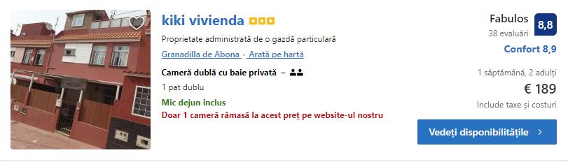 - Cazare 1: Kiki Vivienda – 189 euro / 7 nopti / camera dubla / mic dejun