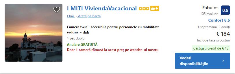 - Cazare 2: I Miti Vivienda – 184 euro / 7 nopti / camera dubla