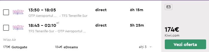 - Zbor: Bucuresti – Tenerife, 174 euro, dus-intors, operat de Wizz Air