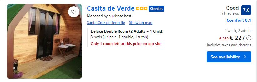 - Cazare (opt. 1): Casita de Verde – 227 euro / 7 nopti / camera dubla