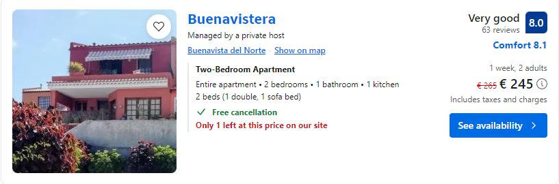 - Cazare (opt. 2): Buenavistera – 245 euro / 7 nopti / camera dubla