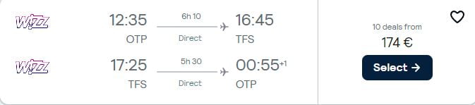 - Zbor: Bucuresti – Tenerife, 174 euro, dus-intors, operat de Wizz