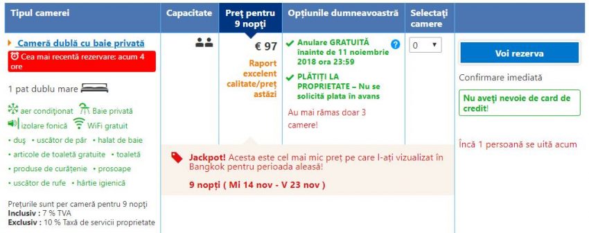 - Zbor: Bucuresti – Bangkok, 485 euro, dus-intors, operat de Aeroflot (bagaj de cala inclus)