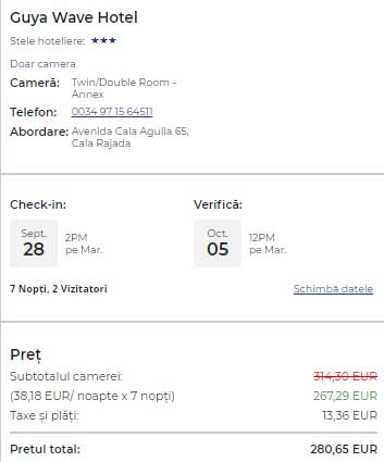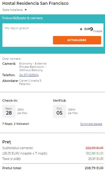 - Cazare: 209 / 2 = 104.5 euro/p