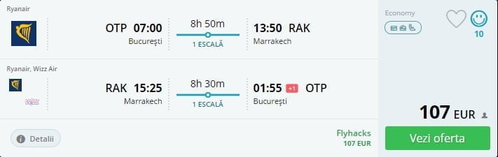 - Bucuresti – Marrakech, 107 euro, dus-intors, operat de Ryanair (garantie Flyhacks)