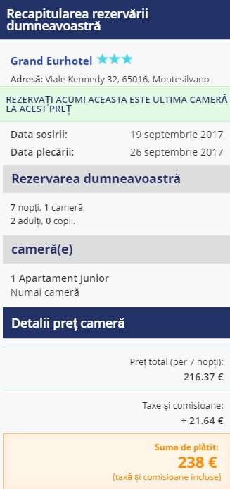 - Grand Eurhotel – 238 euro / 7 nopti / camera dubla (hotelul este situat la 2 minute fata de plaja) SAU