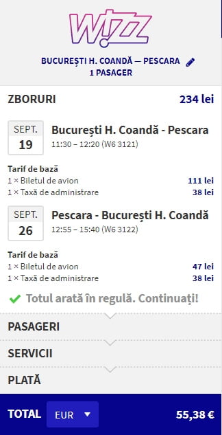 - Bucuresti – Pescara, 55 euro, dus-intors, operat de Wizz Air