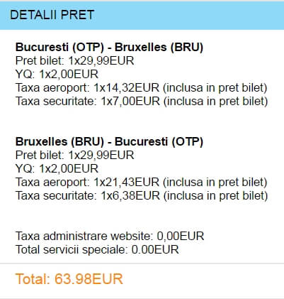 - Bucuresti – Bruxelles, 64 euro, dus-intors, operat de Blue Air