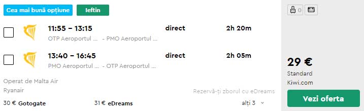 - Zbor: Bucuresti – Palermo, 29 euro, dus-intors, operat de Ryanair