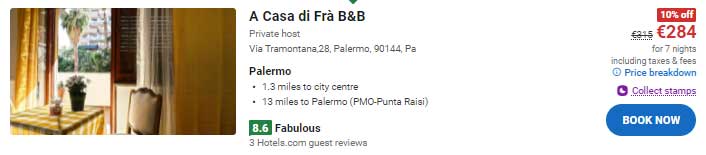 - Cazare 1: A Casa di Fra’ (Palermo) – 284 euro / 7 nopti / camera dubla