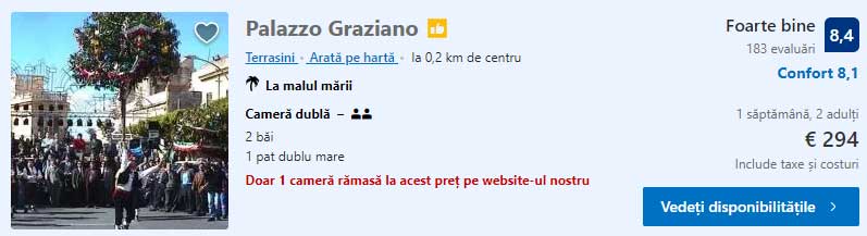 - Cazare 2: Palazzo Graziano (Terrasini) – 294 euro / 7 nopti / camera dubla