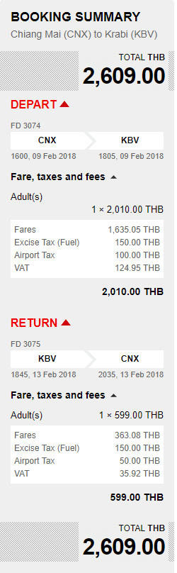 Zborurile interne, Chiang Mai – Krabi – Chiang Mai, sunt operate de Air Asia si au preturi similare in ianuarie si februarie, asa ca poti sa iti imparti noptile de cazare cum vrei, daca exemplul nostru nu te avantajeaza.