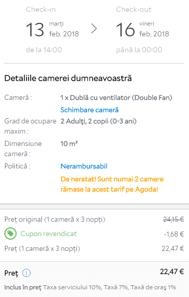 Trebuie sa intelegi ca exista un numar limitat de bilete la pretul din simulare, dar am strans pentru tine multe alte date disponibile. Le gasesti la sfarsitul articolului, trebuie doar sa iti cauti cazare in perioada care iti convine, iar pentru asta nici macar nu e nevoie sa iesi din site, ai in sidebar un motor de cautare pe care il poti folosi.