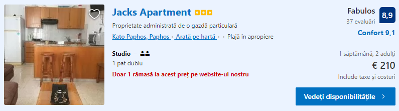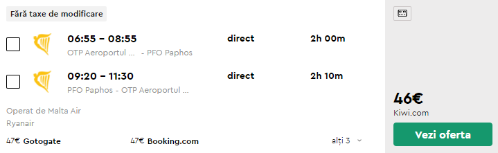 - Zbor: Bucuresti – Paphos, 46 euro, dus-intors, operat de Ryanair