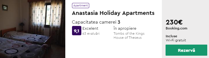 - Cazare 2: Anastasia Holiday Apartments – 230 euro / 7 nopti / camera dubla