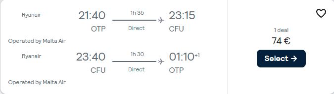 - Zbor: Bucuresti – Corfu, 74 euro, dus-intors, operat de Ryanair