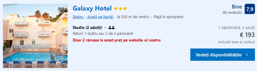 - Cazare 2: Galaxy Hotel – 193 euro / 7 nopti / camera dubla