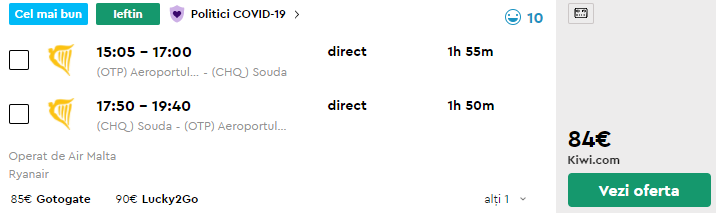 - Zbor: Bucuresti – Creta, 84 euro, dus-intors, operat de Ryanair