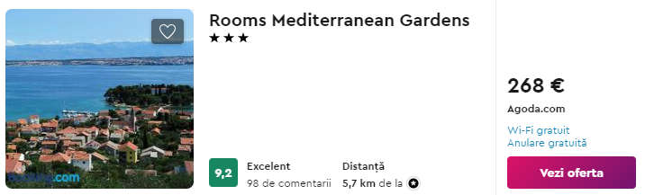 - Cazare (opt.1) Rooms Mediterranean Gardens – 268 euro / 7 nopti / camera dubla
